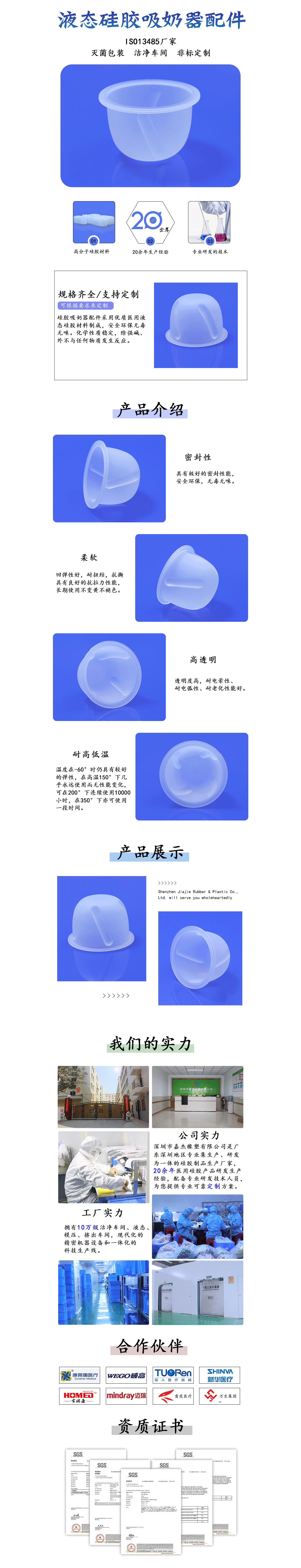 采用優(yōu)質(zhì)硅膠原料制作,具有良好的物理特性,無毒無味且沒有過敏反應(yīng),柔軟高透明可高溫消毒
